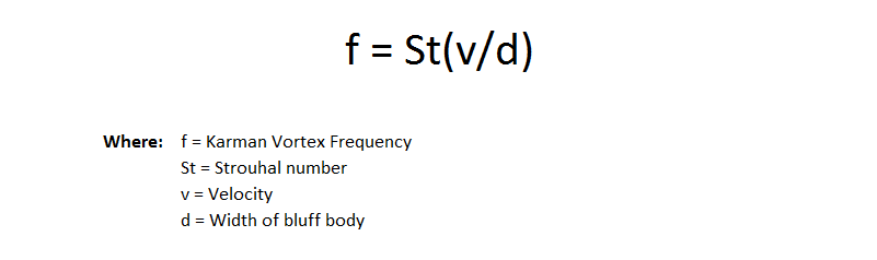 馮·卡曼通過測量這些渦流的頻率發(fā)現(xiàn),其頻率與產(chǎn)生渦流的流速成正例,該頻率被稱為卡門渦頻率??梢杂靡韵鹿皆跀?shù)學(xué)上表達(dá)頻率與流速的關(guān)系: